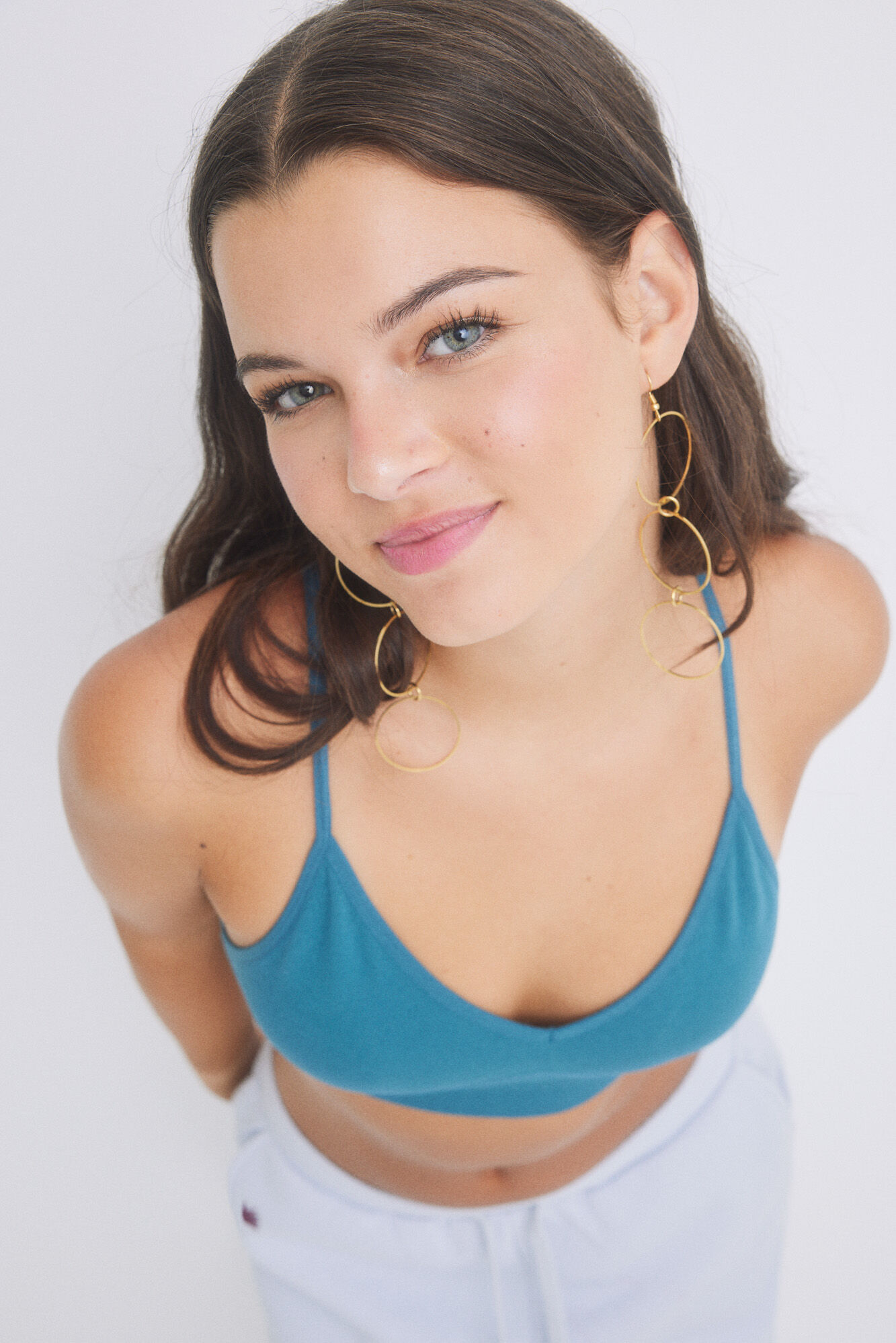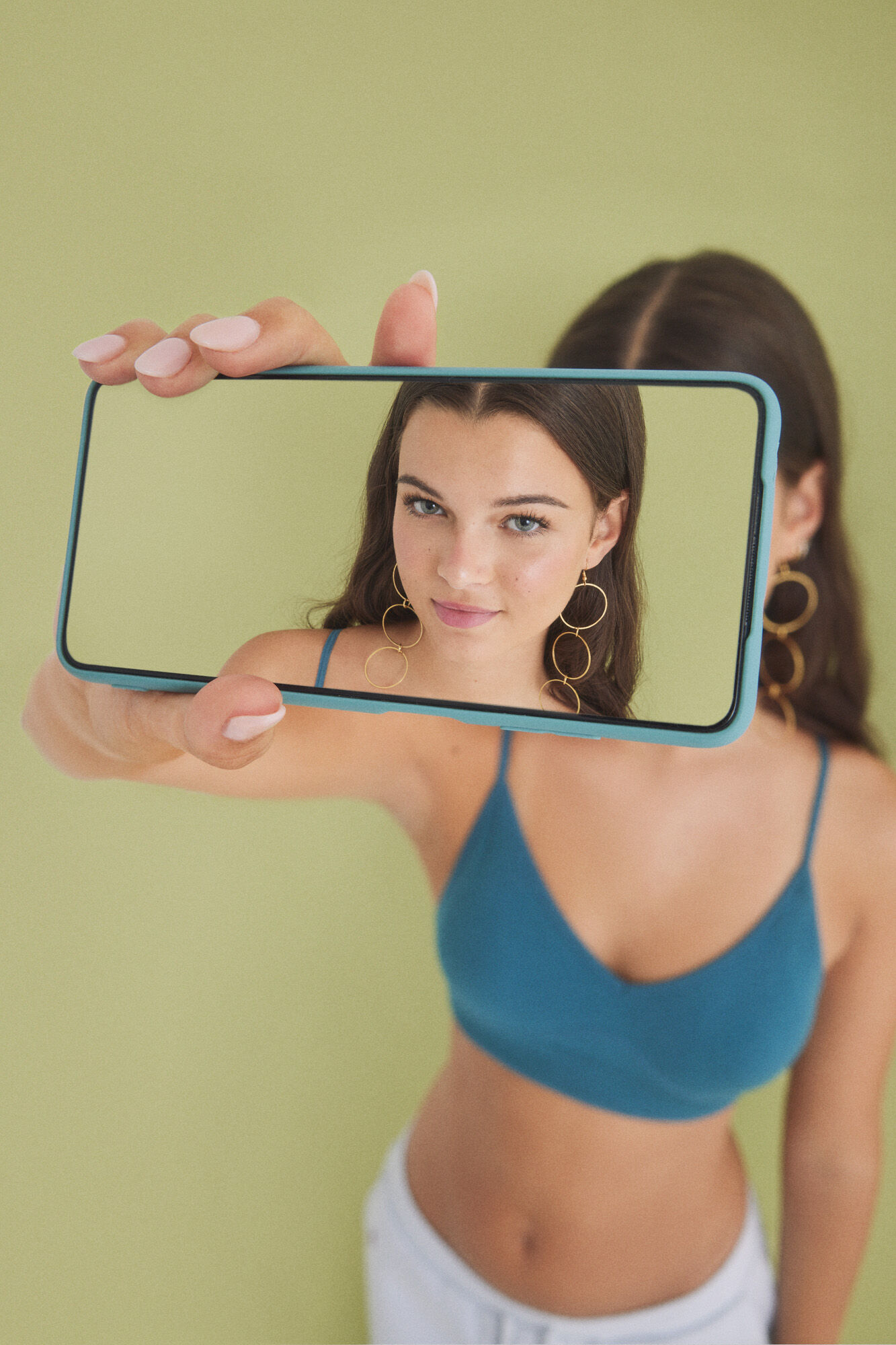 -61%Blue cropped bra with T-shirt neckline, in seamless ribbed fabric. With removable cups and multi-position straps. Choose the shade you like the most (from a wide variety of options!).
