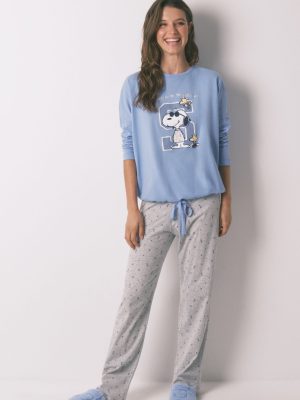 Shirt pajamas, consisting of a short sleeve shirt and lounge trouser , made with 100% cotton fabric , in gray with an all-over Snoopy print . Super soft and comfortable, you won”t want to take it off all day. Perfect for this season! Top with shirt collar