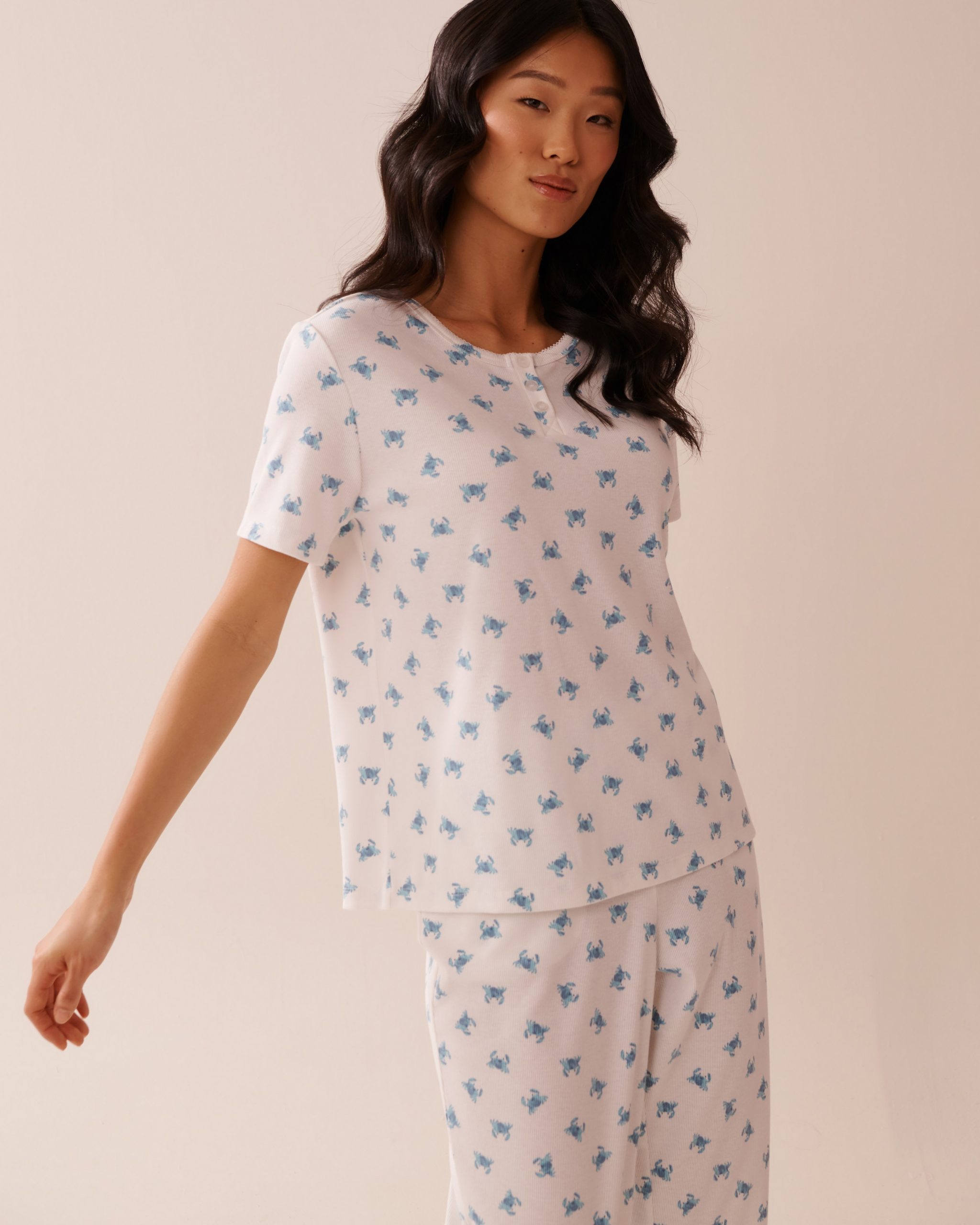 -69%A ribbed pajama t-shirt with a charming summer print — perfect for cozy nights in. Finished with a sweet picot trim and buttons.