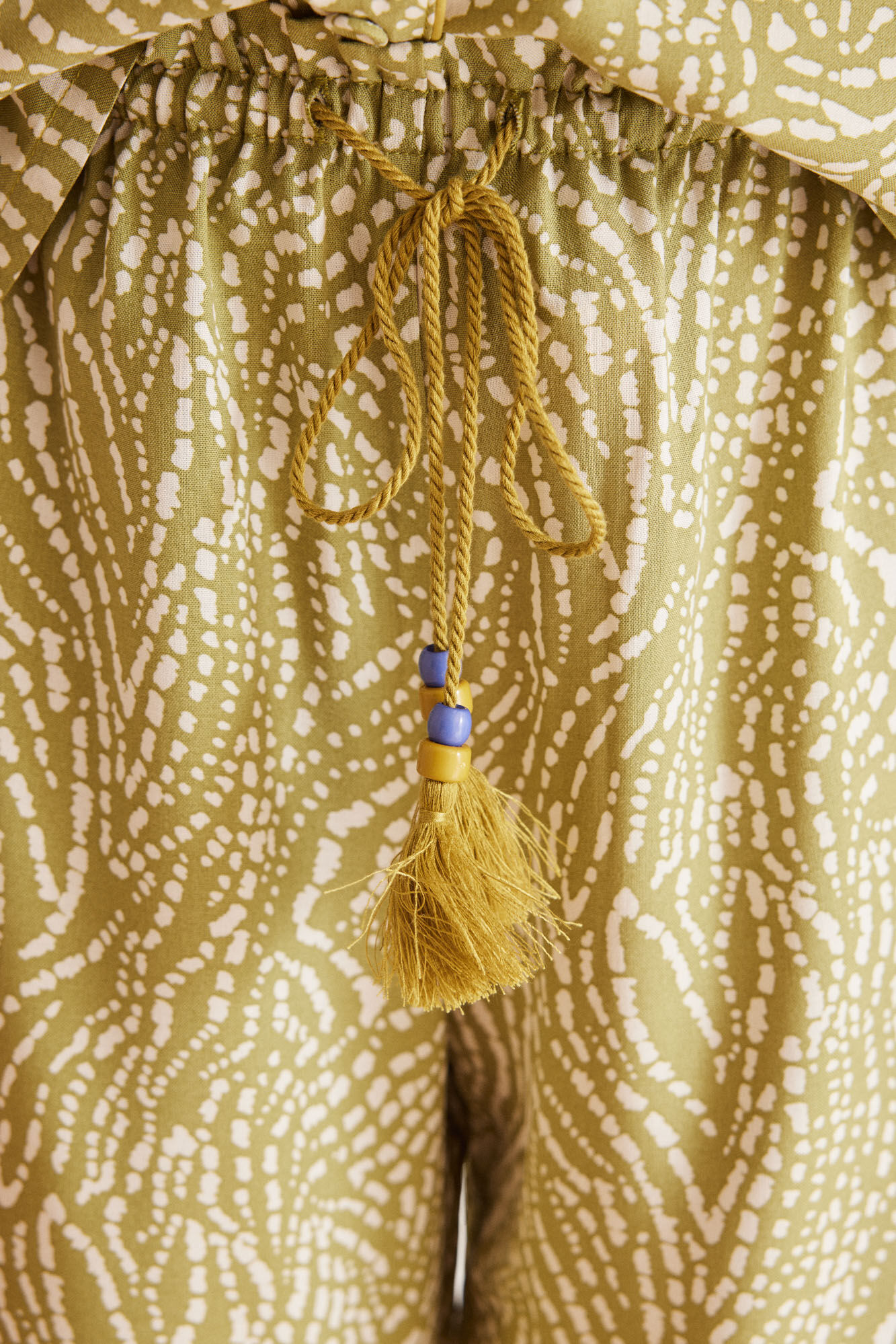 Classic pyjamas in viscose, with short-sleeved shirt and Capri bottoms, in green with an ethnic print. It”s so practical and convenient, that you won”t want to take it off all day. Perfect for this summer! Top with shirt collar, central button fastening,