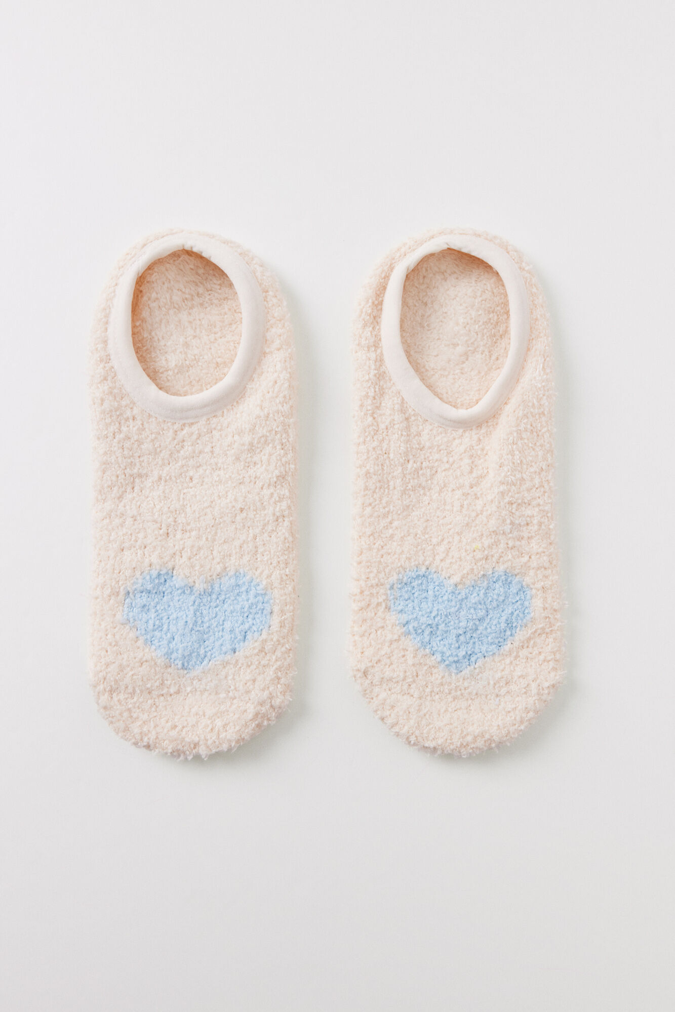 Invisible socks or ”fluffy” fur pinkies with a contrasting heart print . Super warm and comfy, ideal for when the temperatures drop. Wear them at home or out and about. Keep them on show! Color beige. Only changes or returns with seal or defective or dama