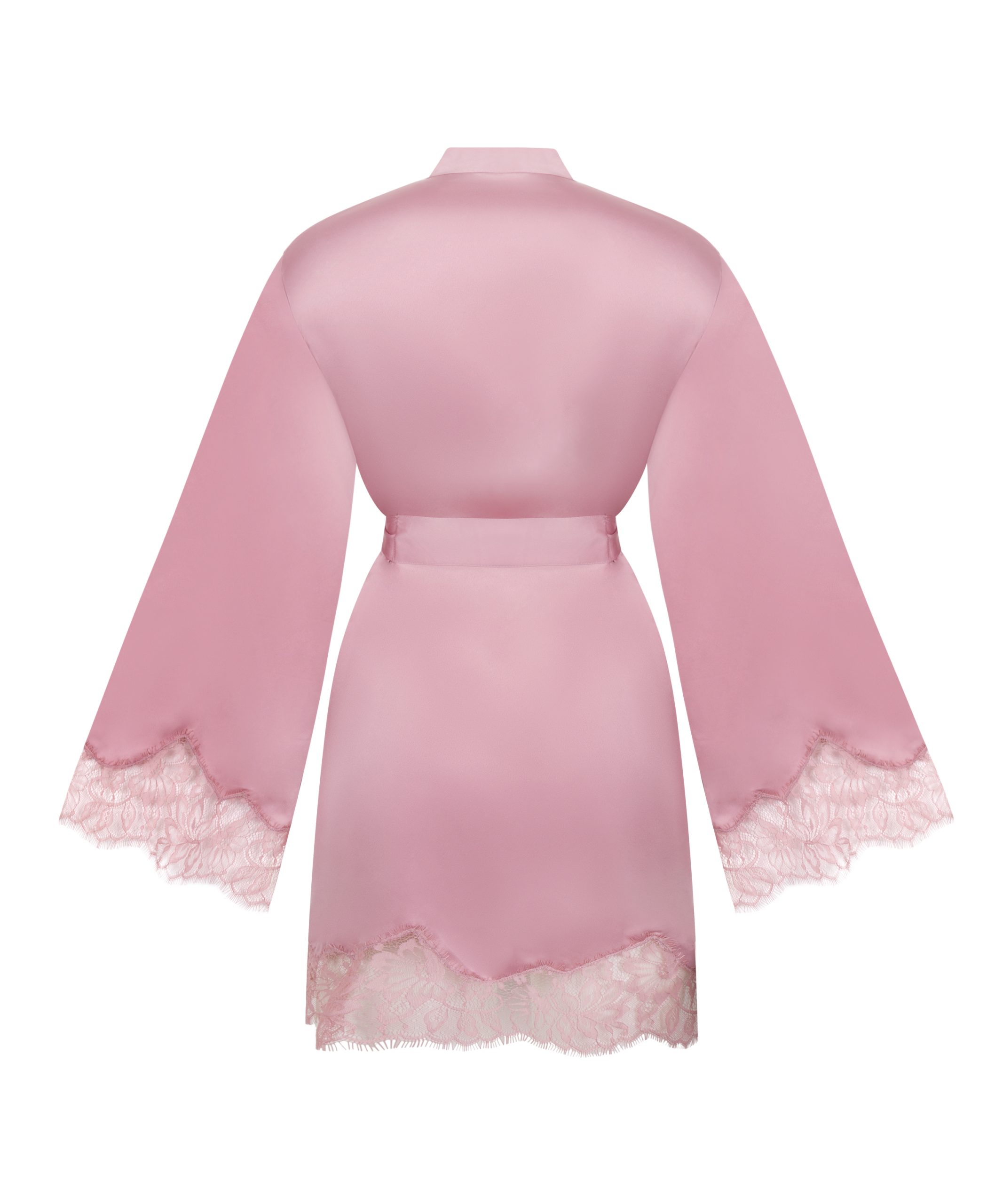Wrap yourself in elegance with this satin kimono, designed to make every moment feel luxurious. Delicate lace trims at the sleeves add a romantic, feminine touch, while the soft satin glides over your skin. Perfect for lounging or layering over your favorite lingerie.