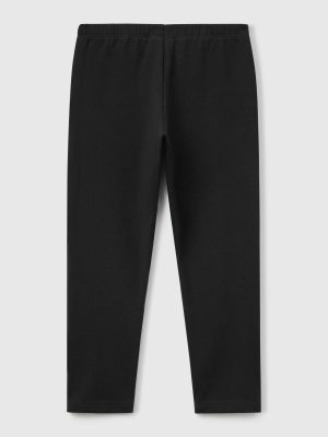 Long leggings in stretch cotton with a soft texture. Tone-on-tone embroidered logo at left side. Flared cut, tighter on the thigh and flared at the bottom. Adjustable waist with inner elastic. Perfect for school or for free time.