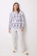 Long sleeve pajamas and carrot trouser , made of warm, super-soft fleece fabric . Perfect for a warm night”s sleep as well as relaxing at home in style. Top with Christmas border and Miffy print , round neck, dropped sleeve and matching ribbed detail on n