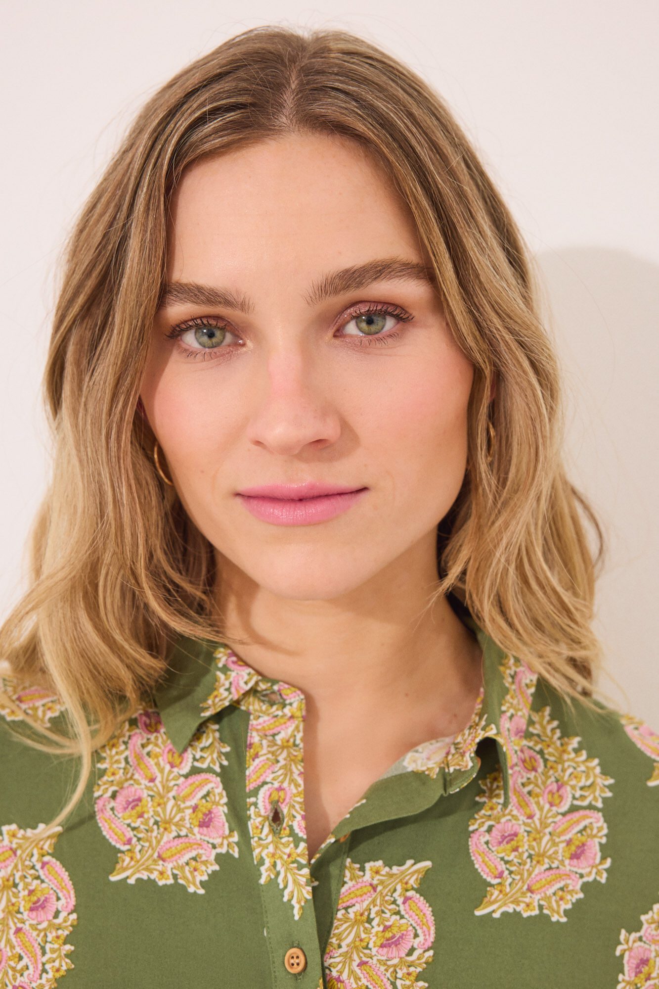 -70%Camisole made of viscose fabric with a cute allover floral stamp print in green. Ideal to wear at home or for your day-to-day in your most relaxed street looks. Shirt collar with a placket at the neckline with wooden buttons . With 3/4 puffed