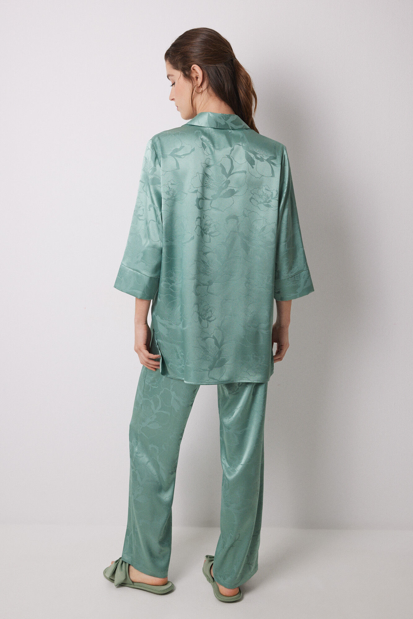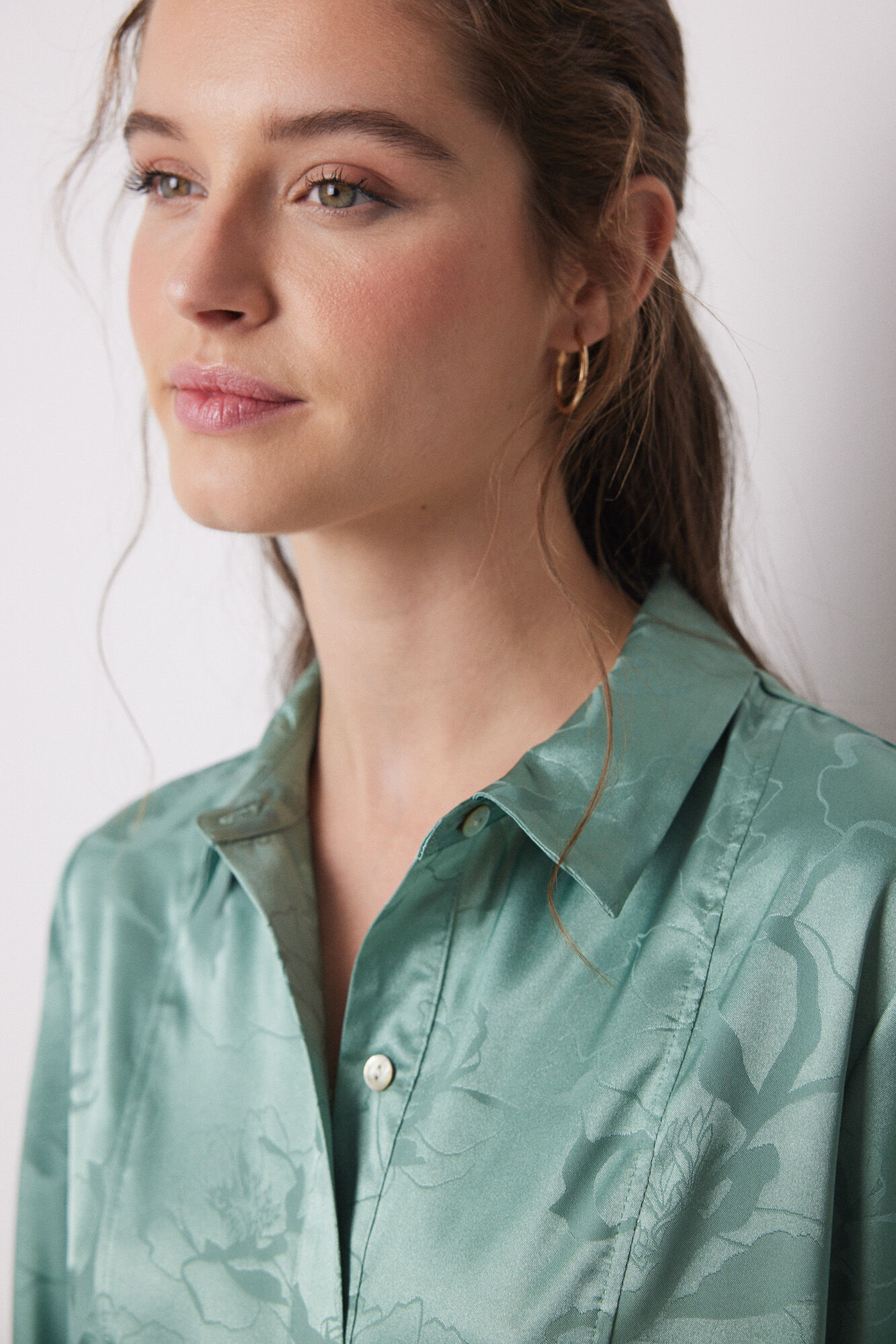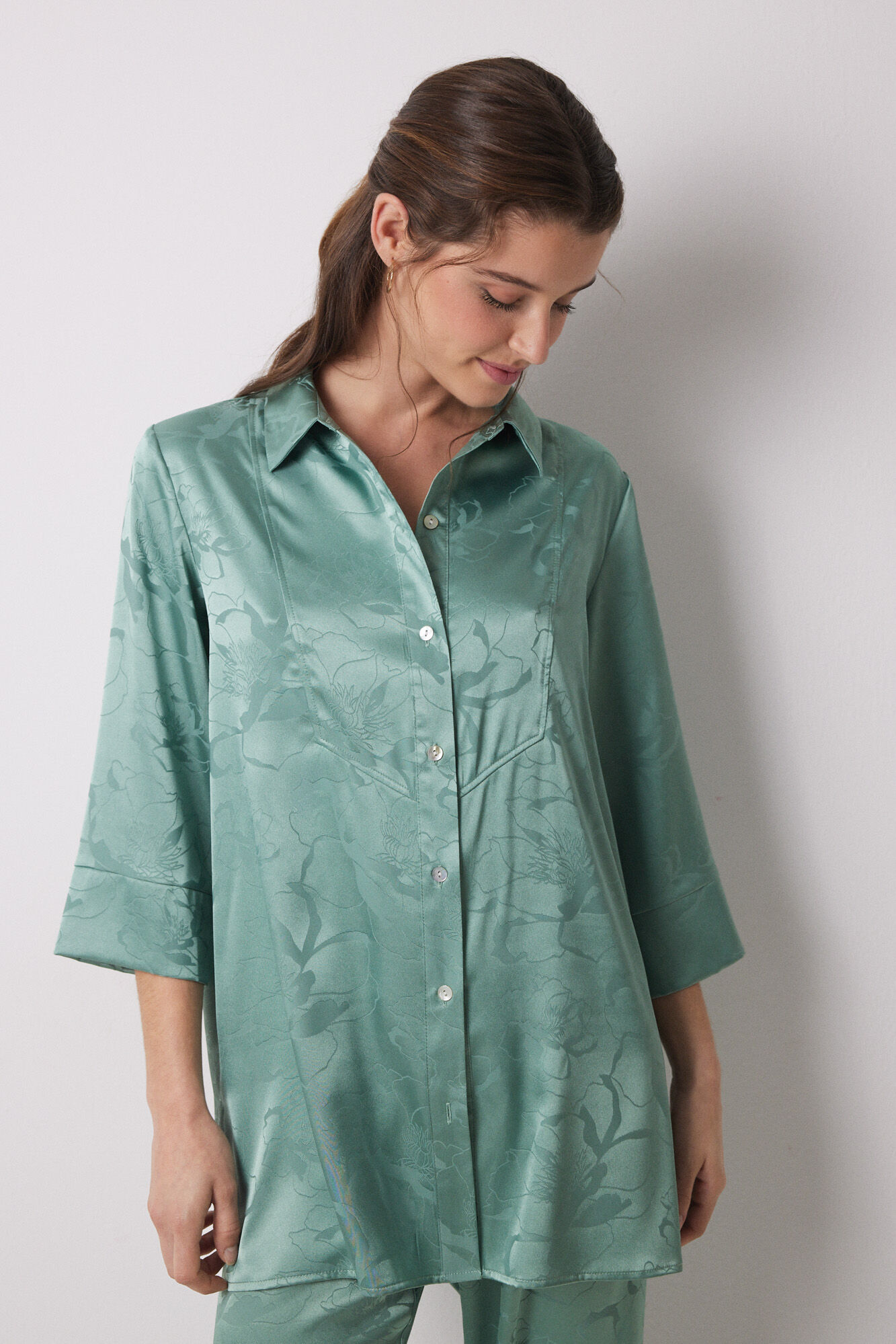 -49%Long shirt pajamas, in satin fabric with a floral jacquard effect, in green. Perfect for sleeping or lounging at home in comfort and style. You choose!