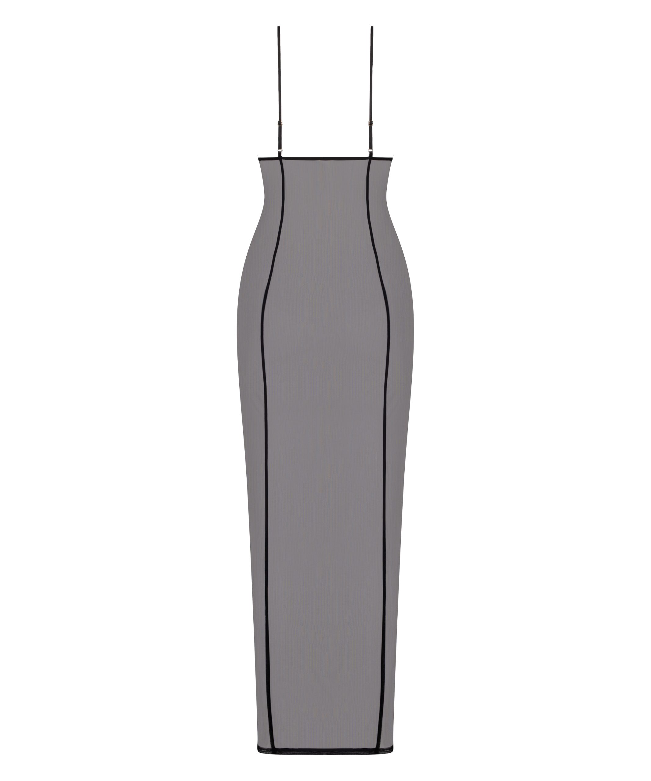 This slip dress is incredible! This dress is crafted entirely from mesh, creating a sheer, captivating look that highlights your unique style. Designed for those who appreciate daring fashion, this maxi dress combines sensuality and sophistication, showcasing a striking balance of texture and transparency.