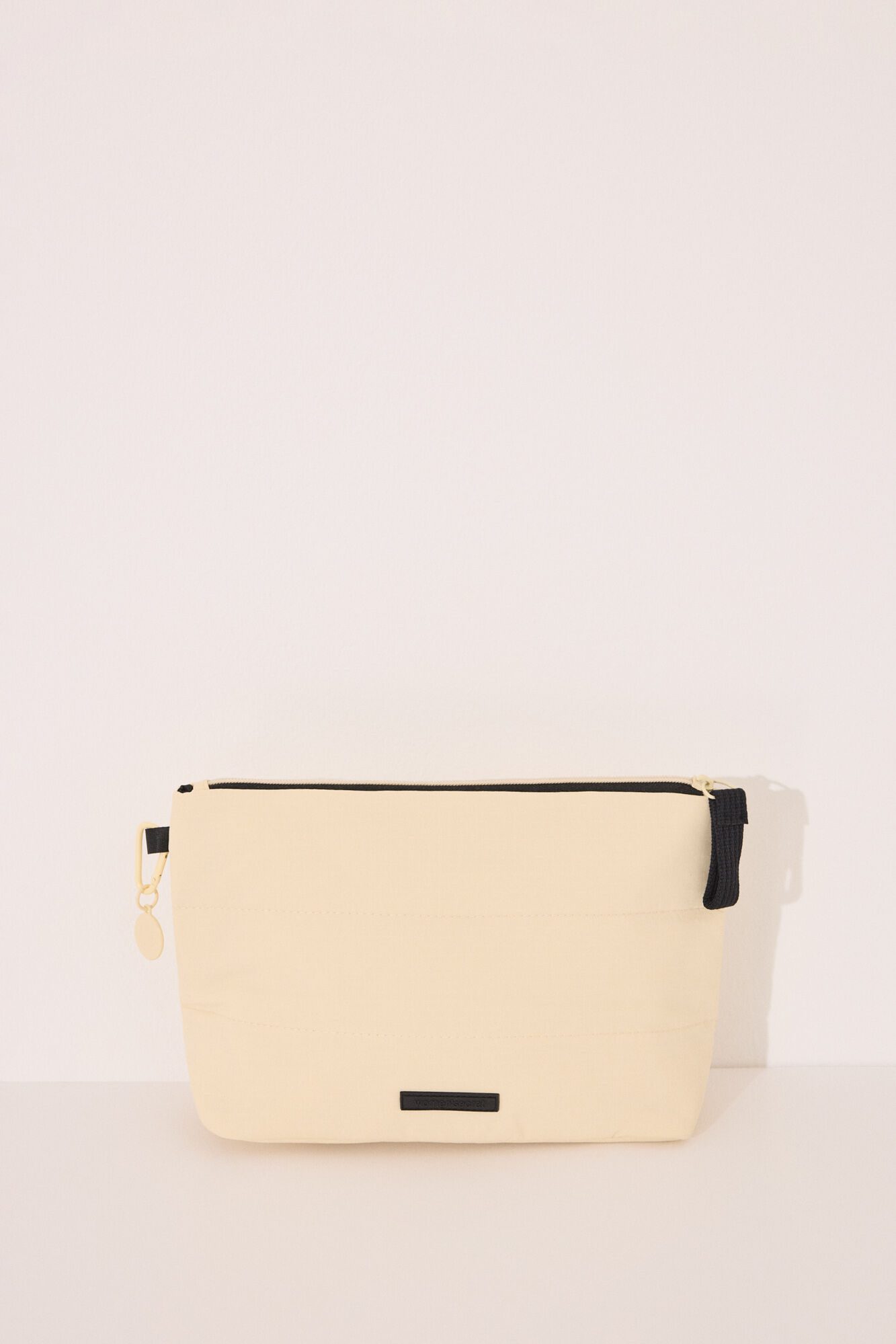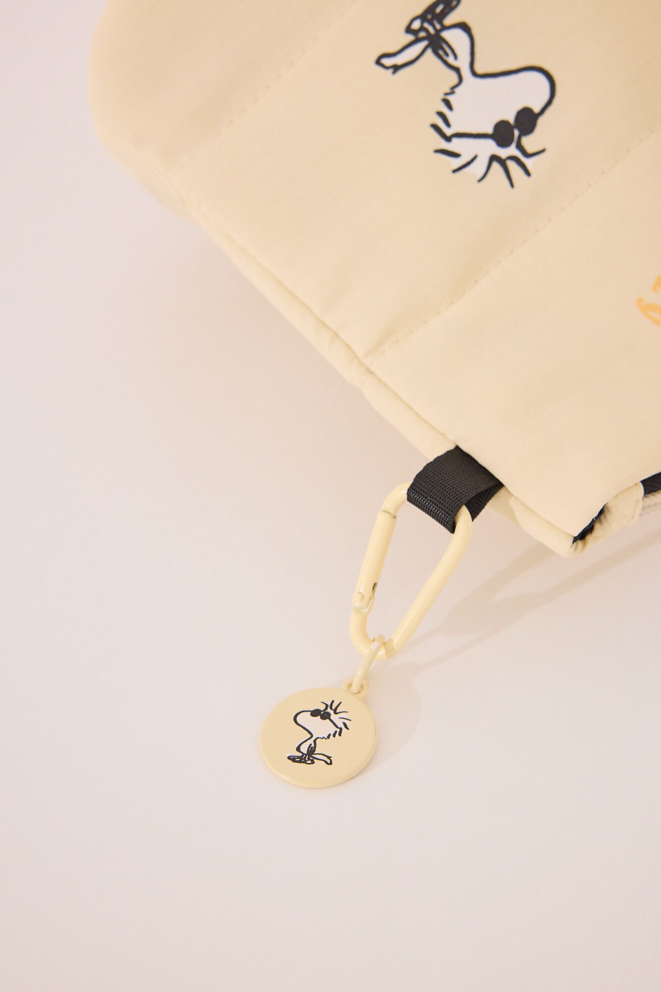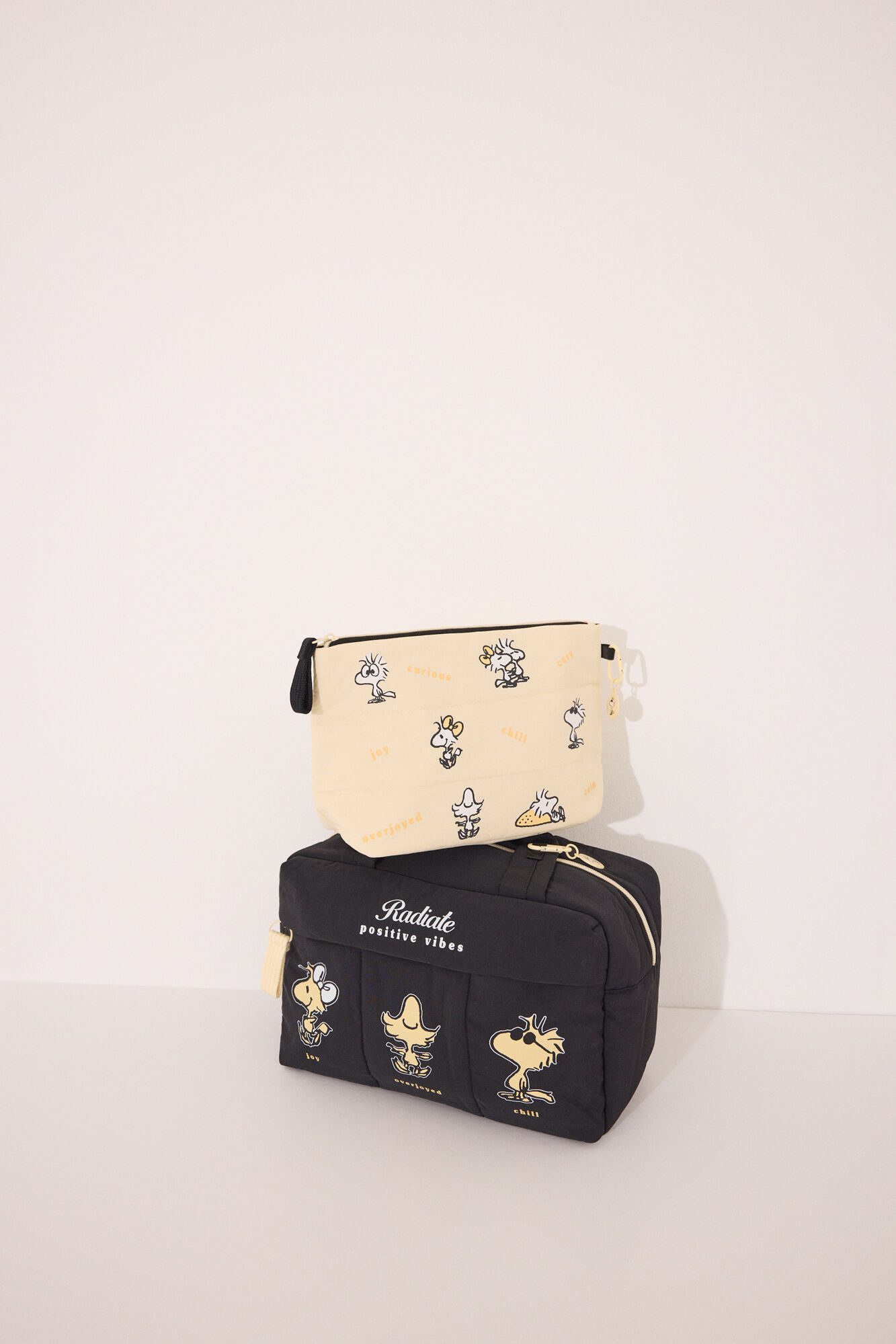 Medium vanity case made of nylon fabric , in yellow with drawings of the Snoopy gang. It is perfect for always carrying all your beauty essentials with you. Measurements: 18 cm x 24 cm x 10 cm.
