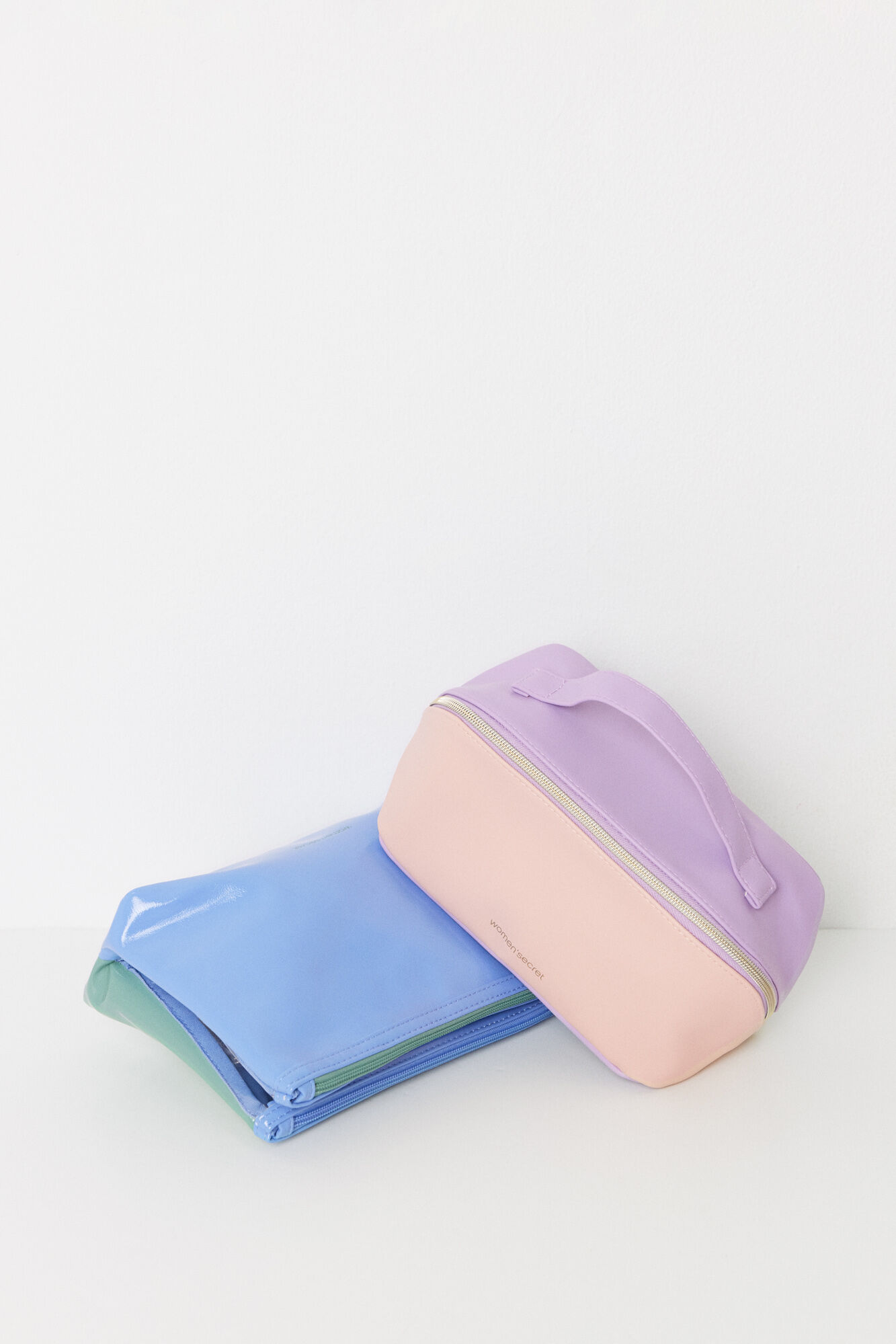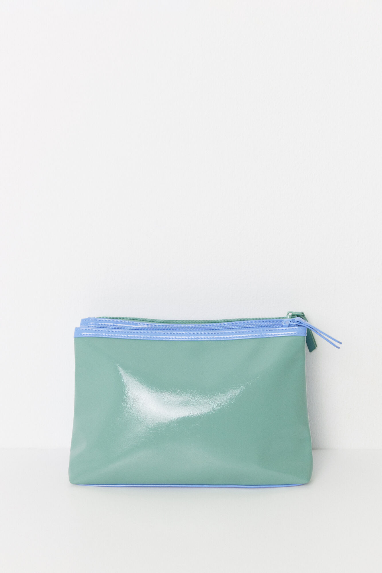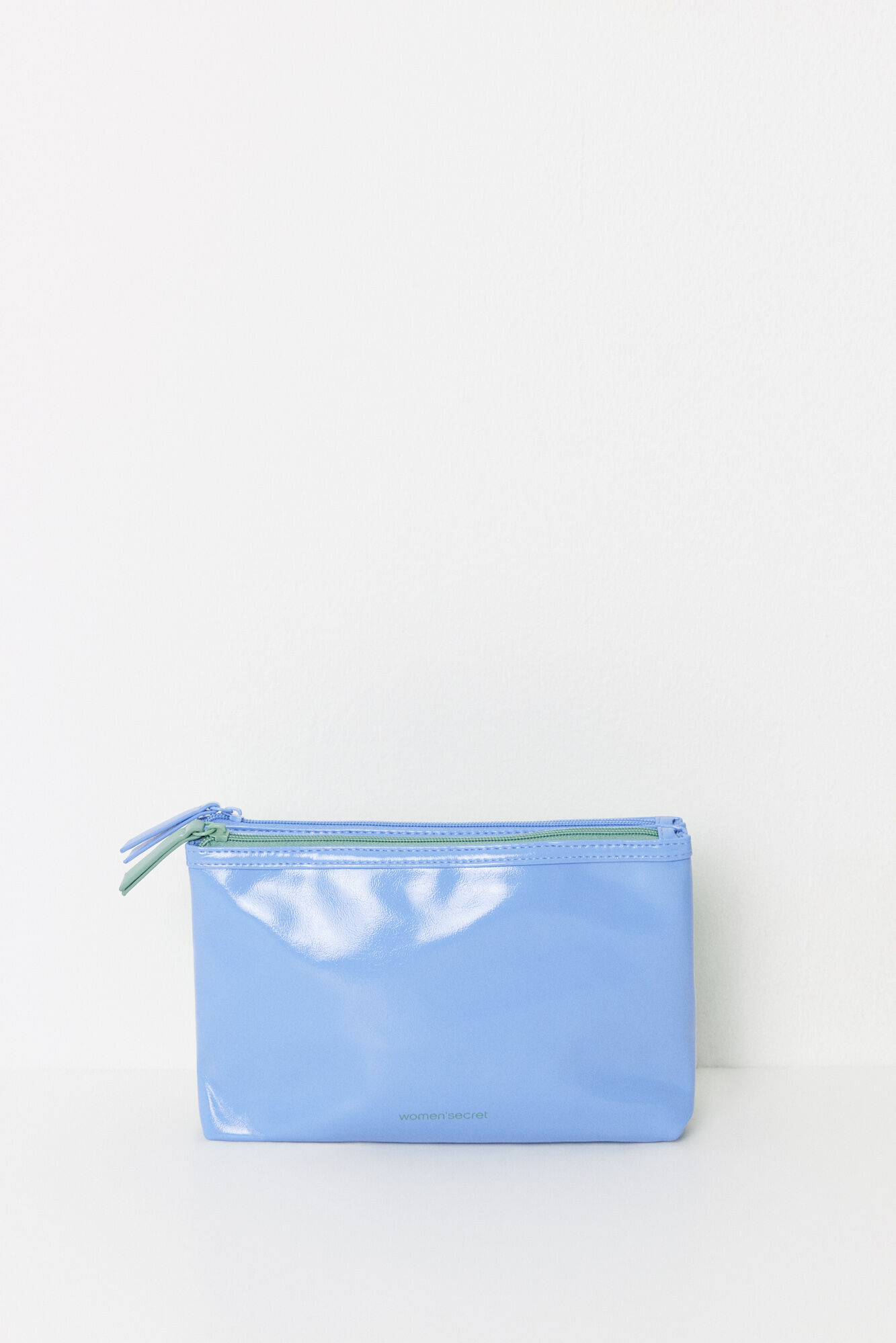 Medium window-style cosmetic bag, in patent leather quality, with double zip fastening and contrasting logo detail. Super practical, with enough space for all your beauty essentials.