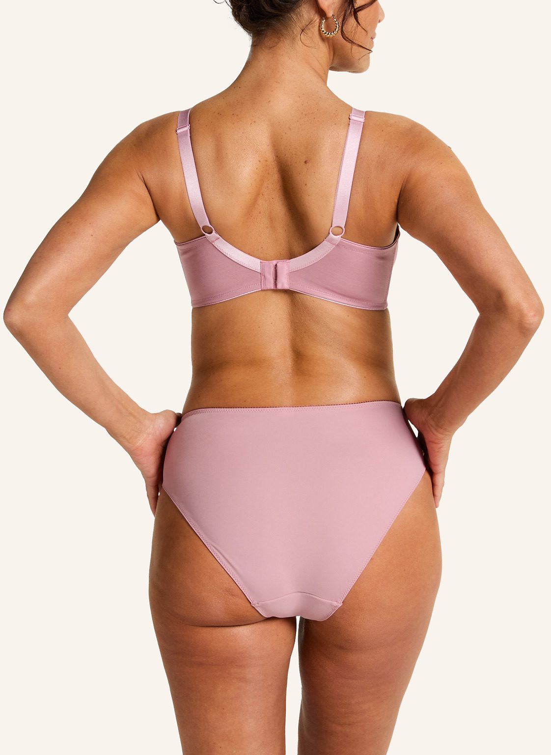 This underwired minimizer bra will make your breasts look one cup size smaller while still being very comfortable to wear. This bra is specially designed for large cup sizes. The cups are finished on the front with semi-transparent fabric.