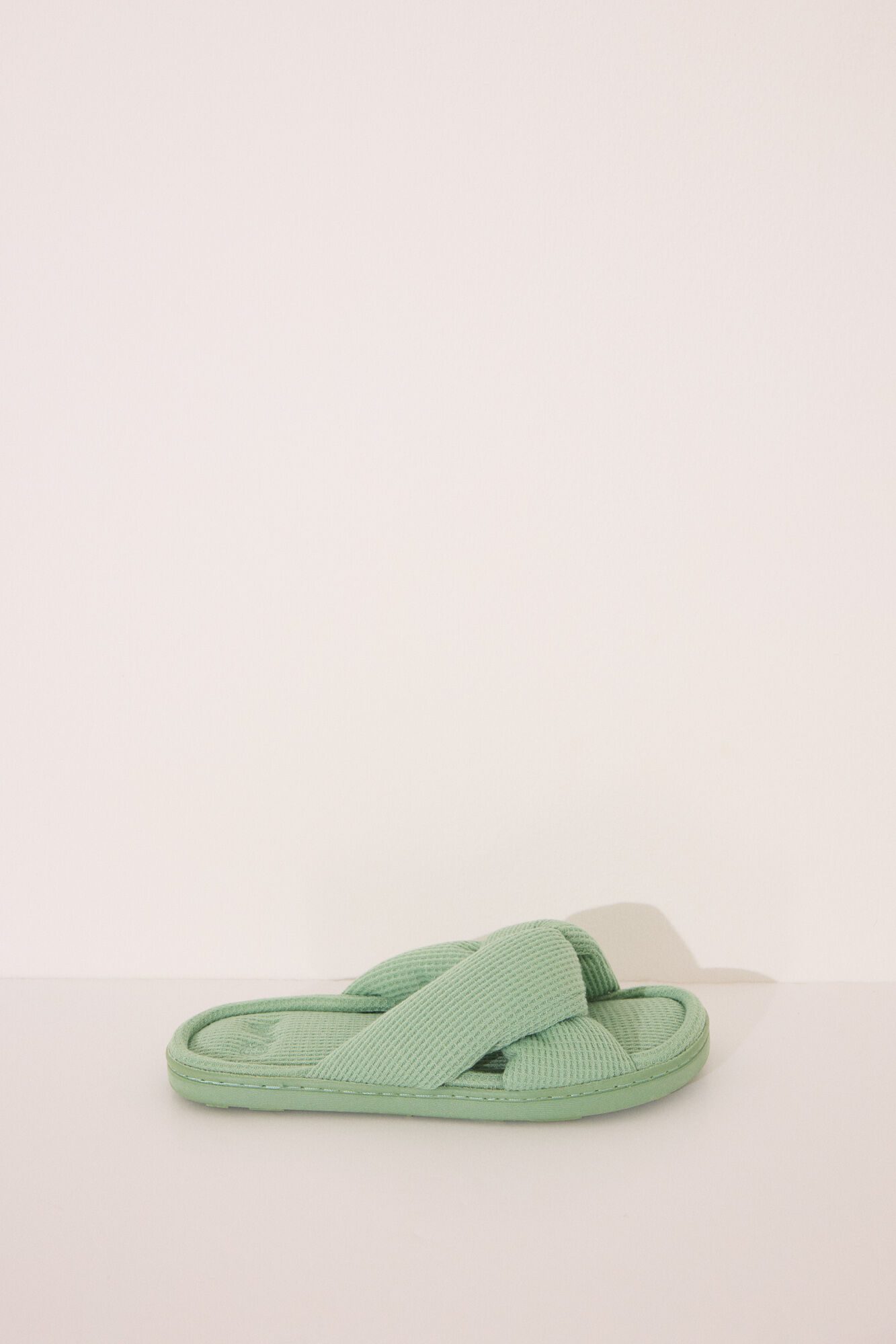 Open-toed, heavily cushioned green sneakers with a waffle texture. Perfect for matching with any garment from the collection. – Soft and comfortable material for everyday wear.