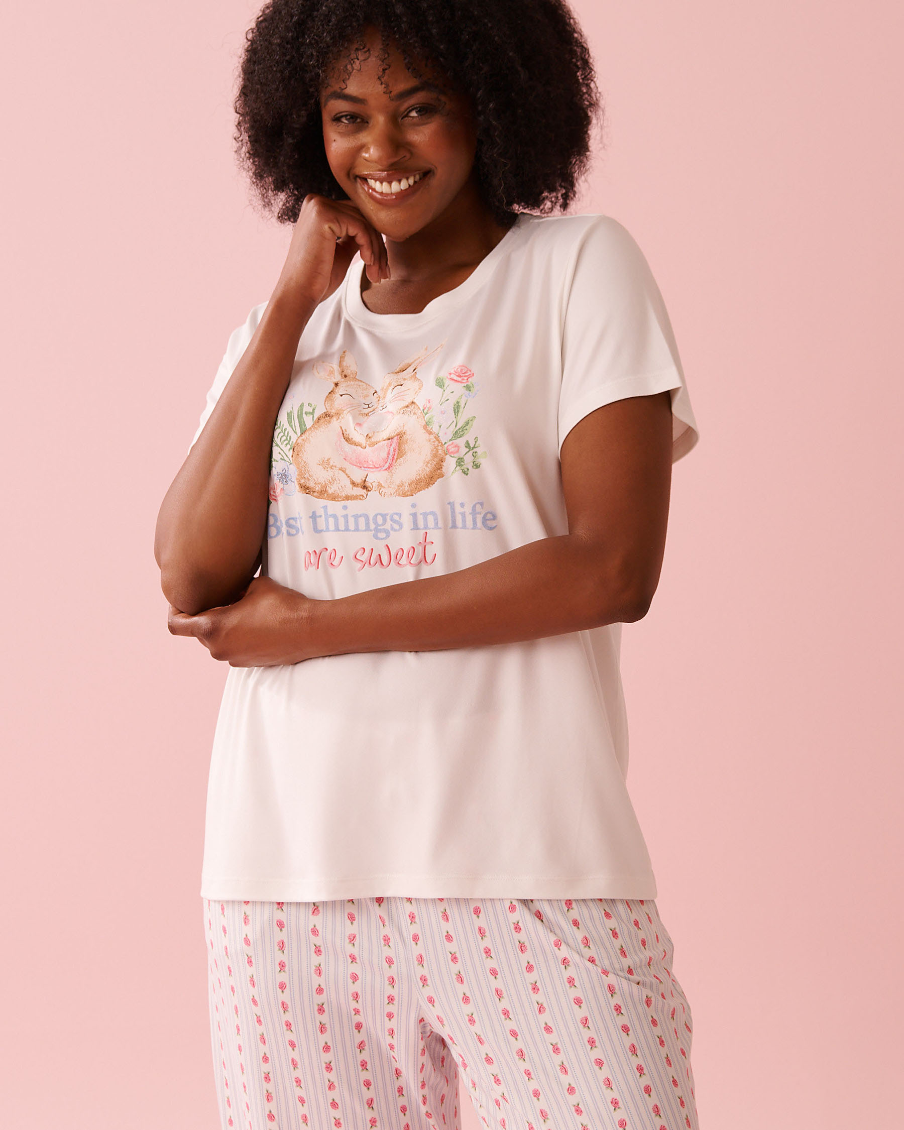 Short sleeves|Crew neck|Peachy Dream fabric: comfortable, ultra soft, ultra stretchy, thin fabric with a peach skin effect on the surface|Sandra wears a size S|97% Polyester 3% Elastane
