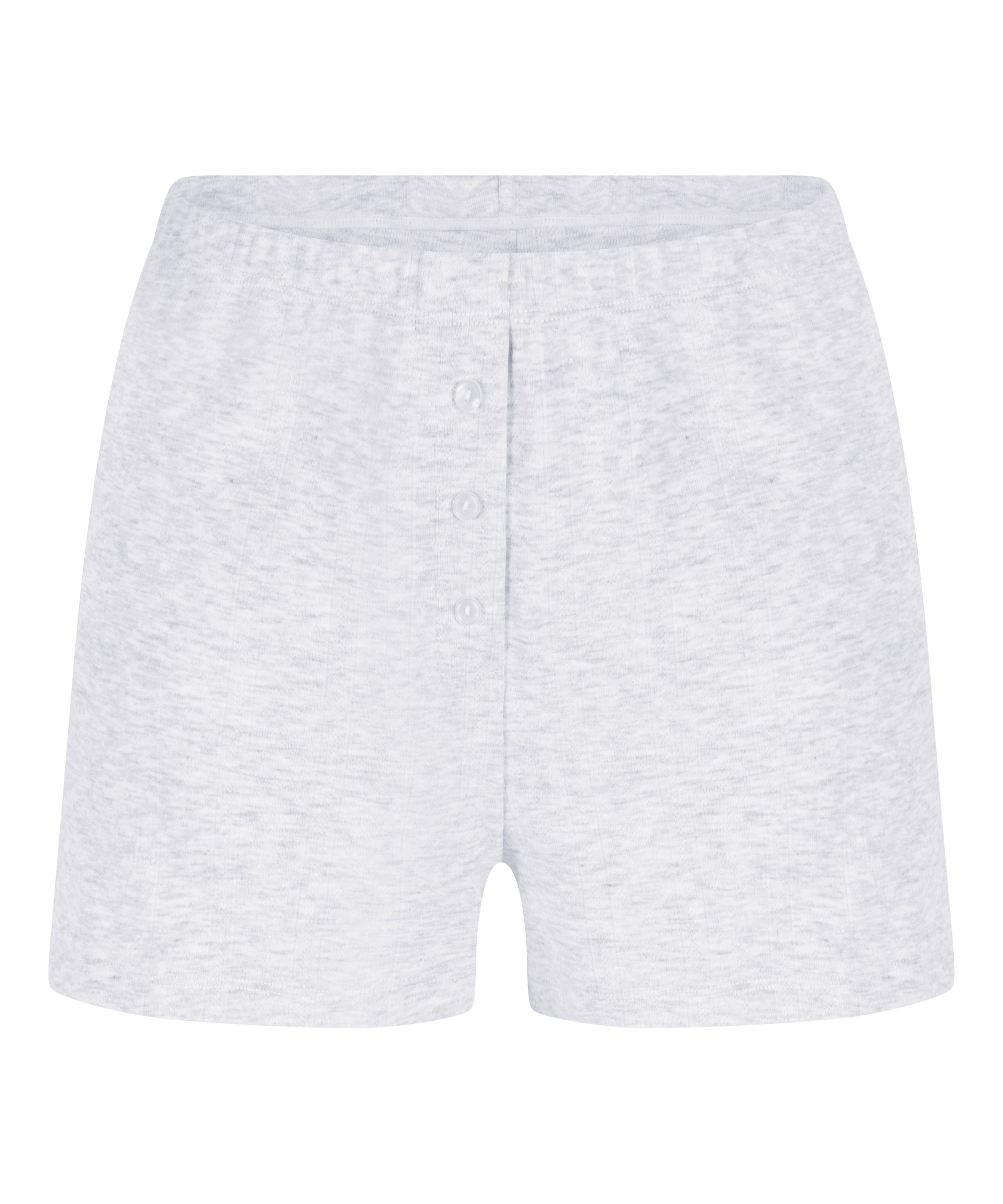 These comfortable shorts feature decorative buttons in the front and an elasticated waistband for a perfect fit. The soft fabric ensures comfort, making them ideal for lounging or sleeping.
