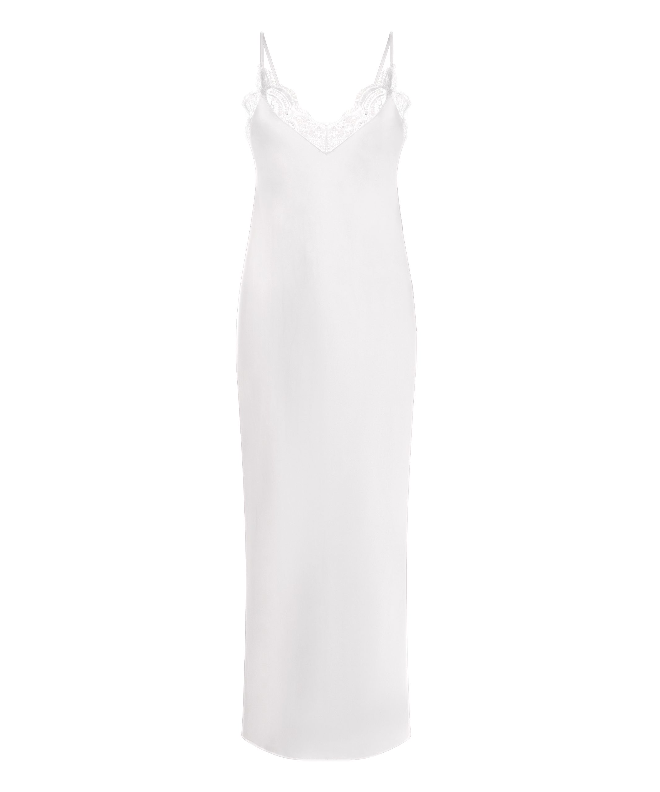 Feel effortlessly precious in this long satin slipdress, designed to glide smoothly over your silhouette. The lace detail on the décolleté adds a soft, romantic charm. Perfect for dreamy nights, bridal moments, or luxe lounging. Pair it with your favourite lingerie set for a complete look!
