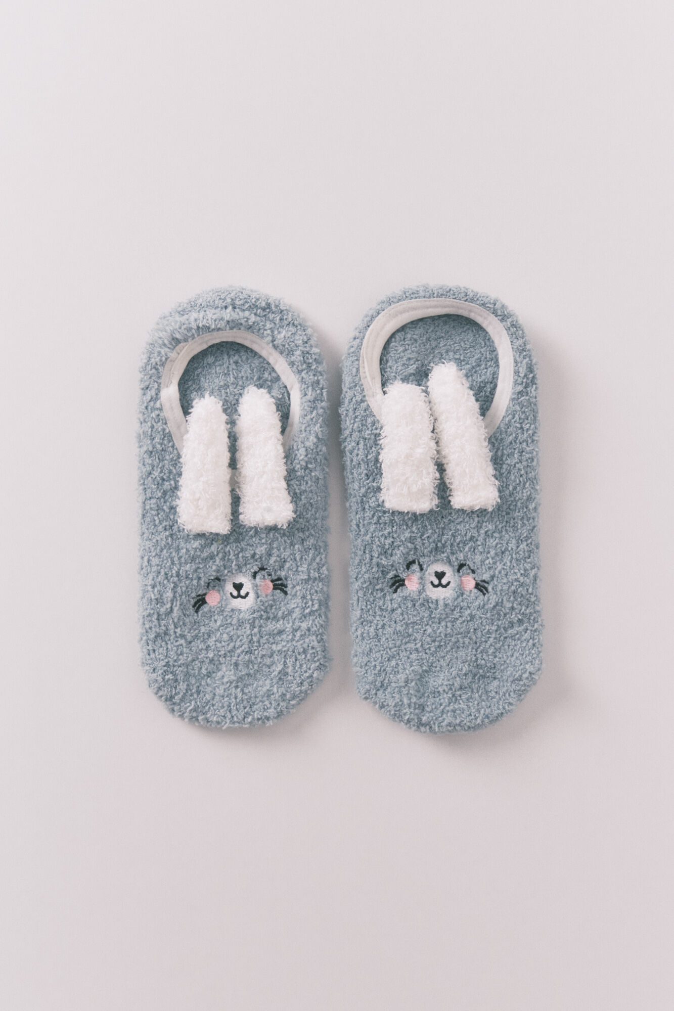 Slip-on socks with a fluffy texture and a 3D bunny design for a fun touch. Designed to offer comfort and style during your daily activities. Soft and comfortable texture. Non-slip embossed print on the bottom.