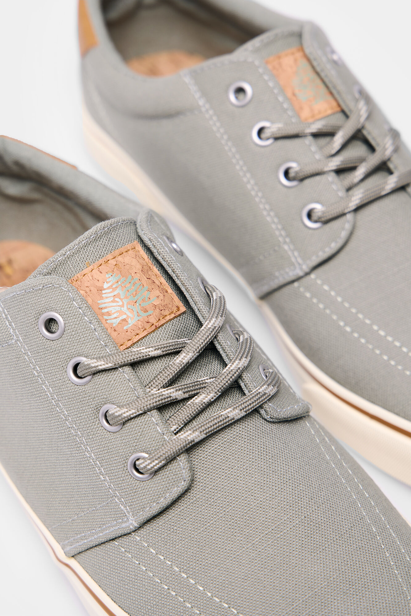 -70%Urban sneaker made of organic cotton, available in two color options. Reinforced detail with quality leather effect pieces, decorated laces, natural cork insole, and personalized vulcanized rubber sole.