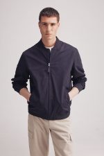 bomber jacket in cotton fabric. Lined in breathable moisture control fabric. With zip fastening fastening and pockets, jersey-knit neck, hem and cuffs, interior zip fastening pocket , and decorative label detail.