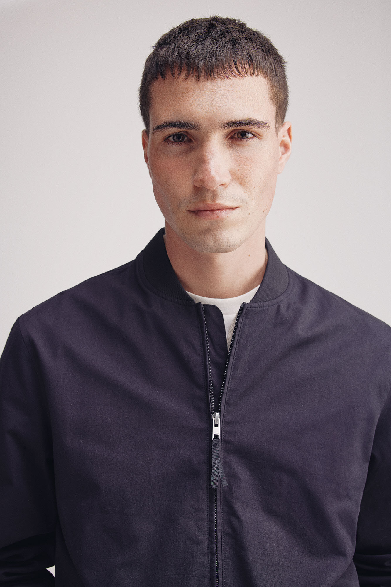 bomber jacket in cotton fabric. Lined in breathable moisture control fabric. With zip fastening fastening and pockets, jersey-knit neck, hem and cuffs, interior zip fastening pocket , and decorative label detail.