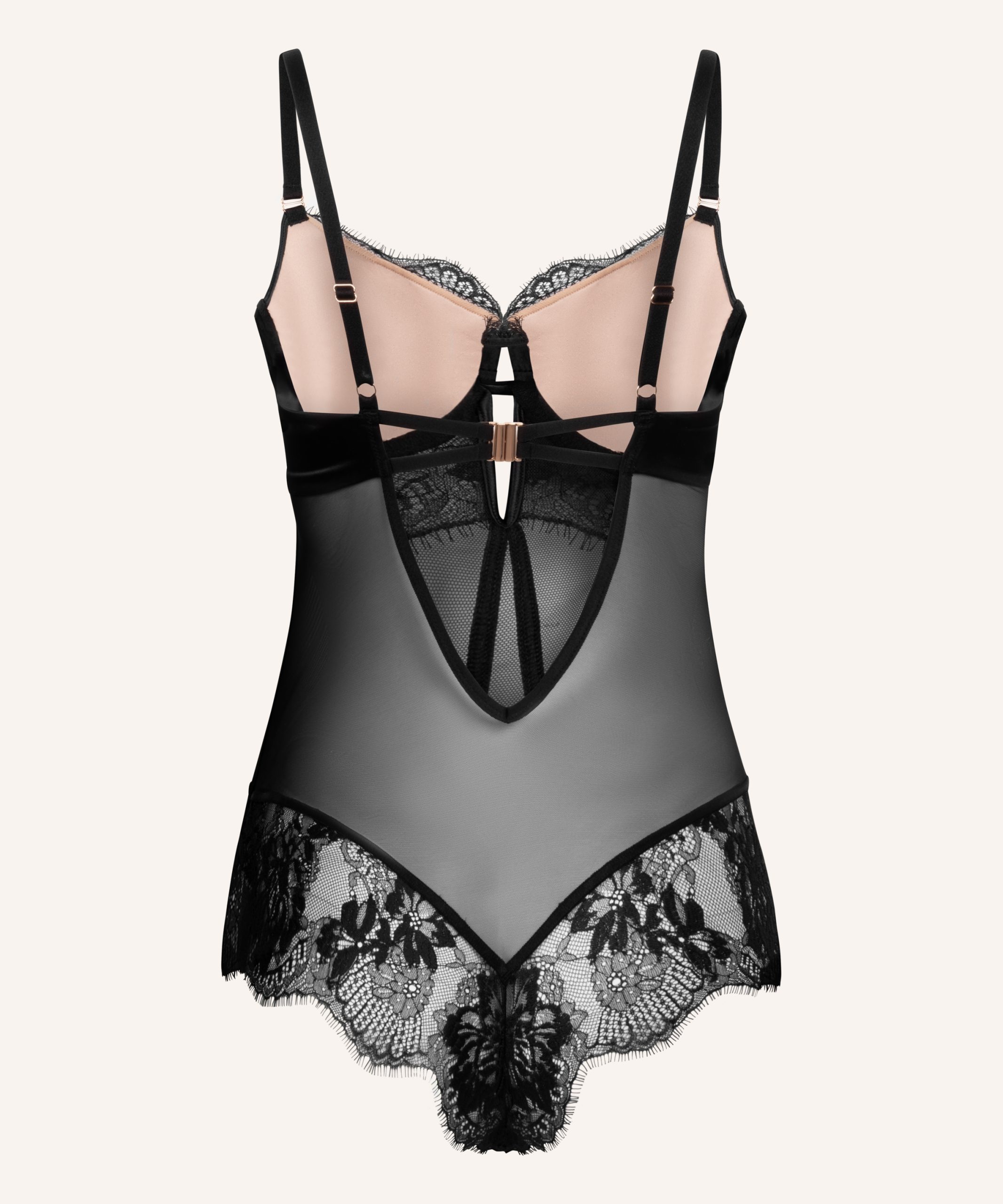 Unveil your innner confidence with our Tiah body. The lace adds a touch of romance, while the satin enhances your curves with its smooth, luxurious feel. The mesh offer a flirtatious gilmpse of skin, giving it the perfect touch of elegance.