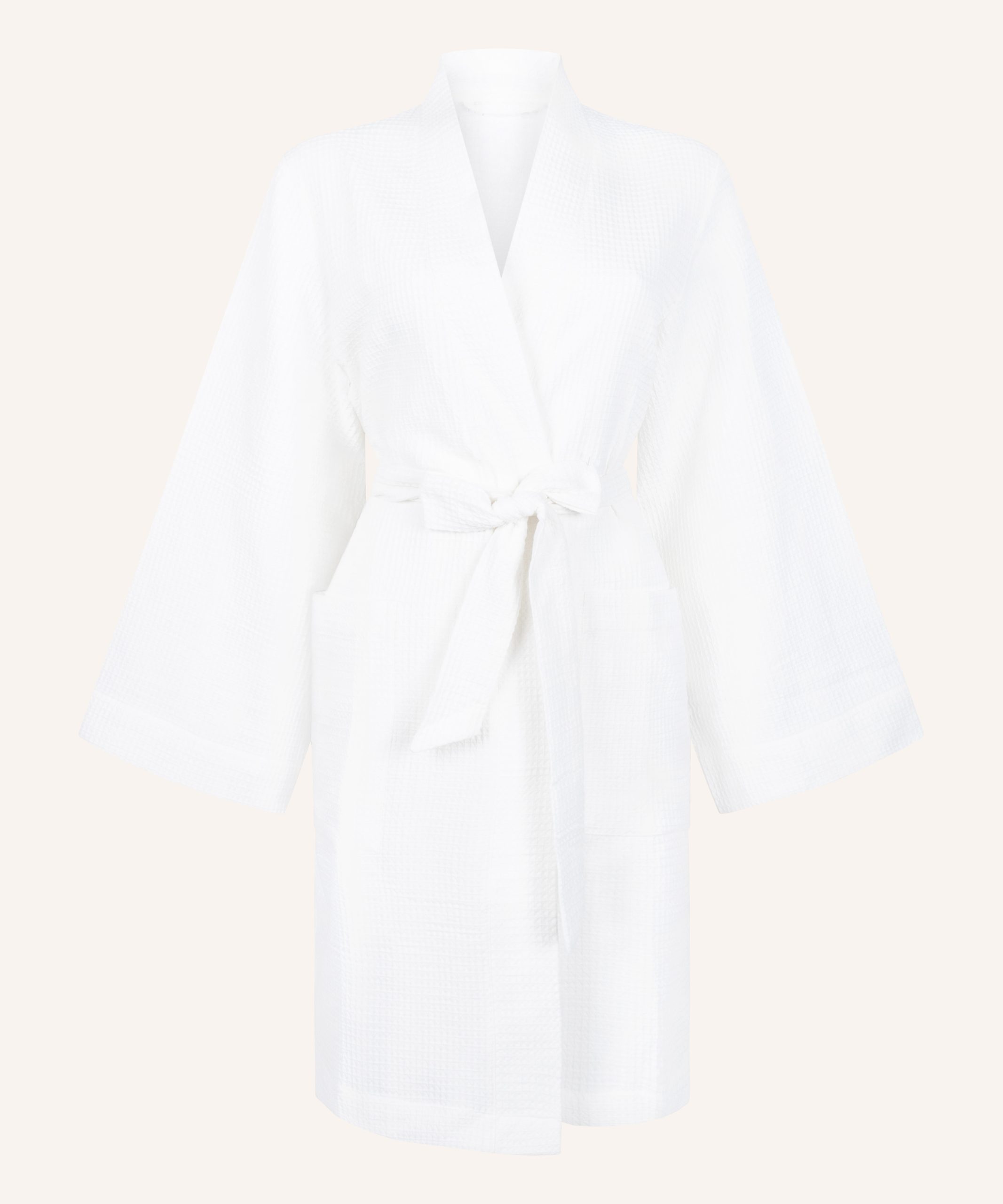 Wrap yourself in comfort with our waffle bathrobe. This bathrobe features a unique waffle texture. Designed to reach the kness, it provides coverage while maintaining a comfortable fit. The bathrobe includes front pockets, the real tie closure ensures a secure and adjustable fit, making it ideal for post-show relaxation or lounging around the house.