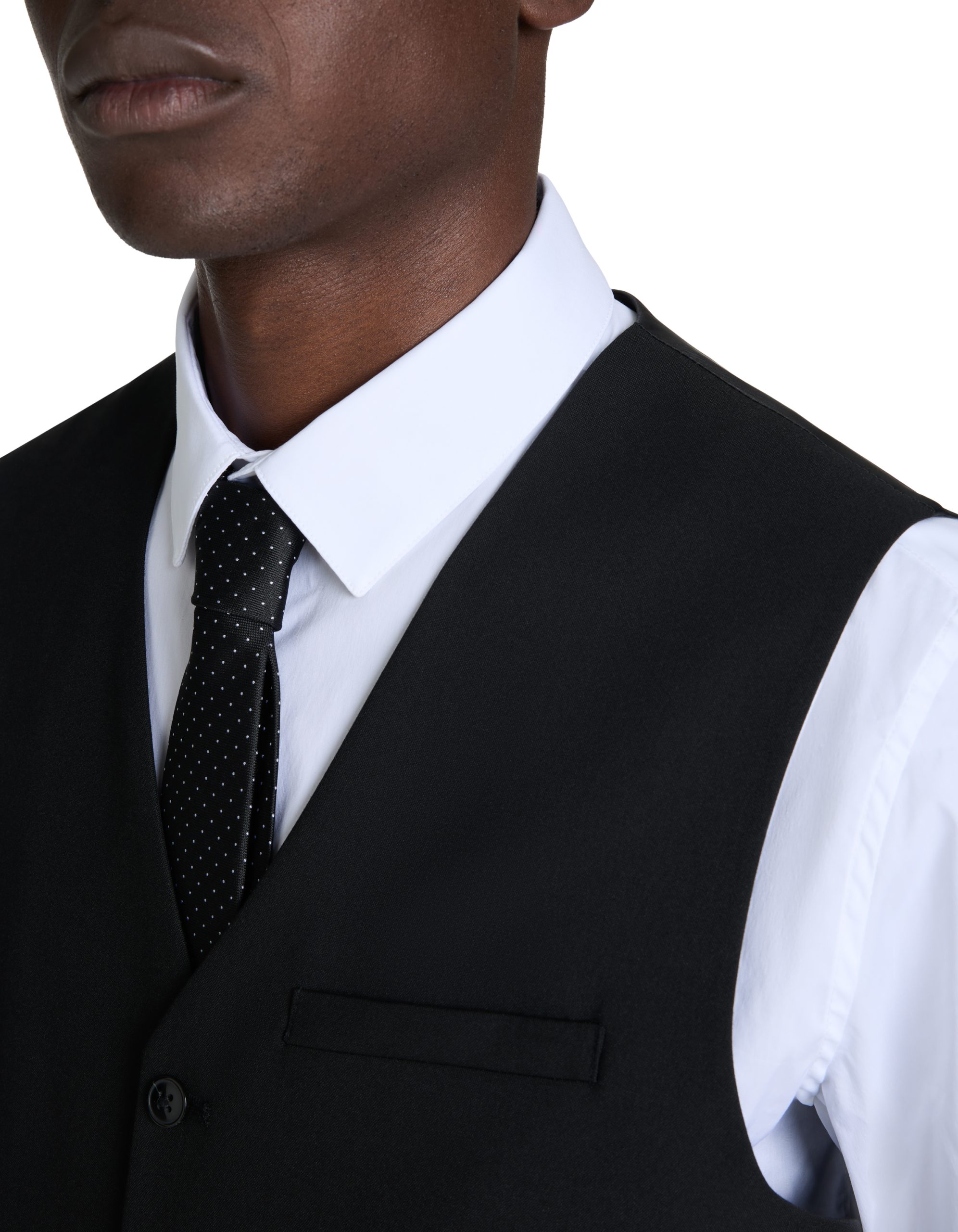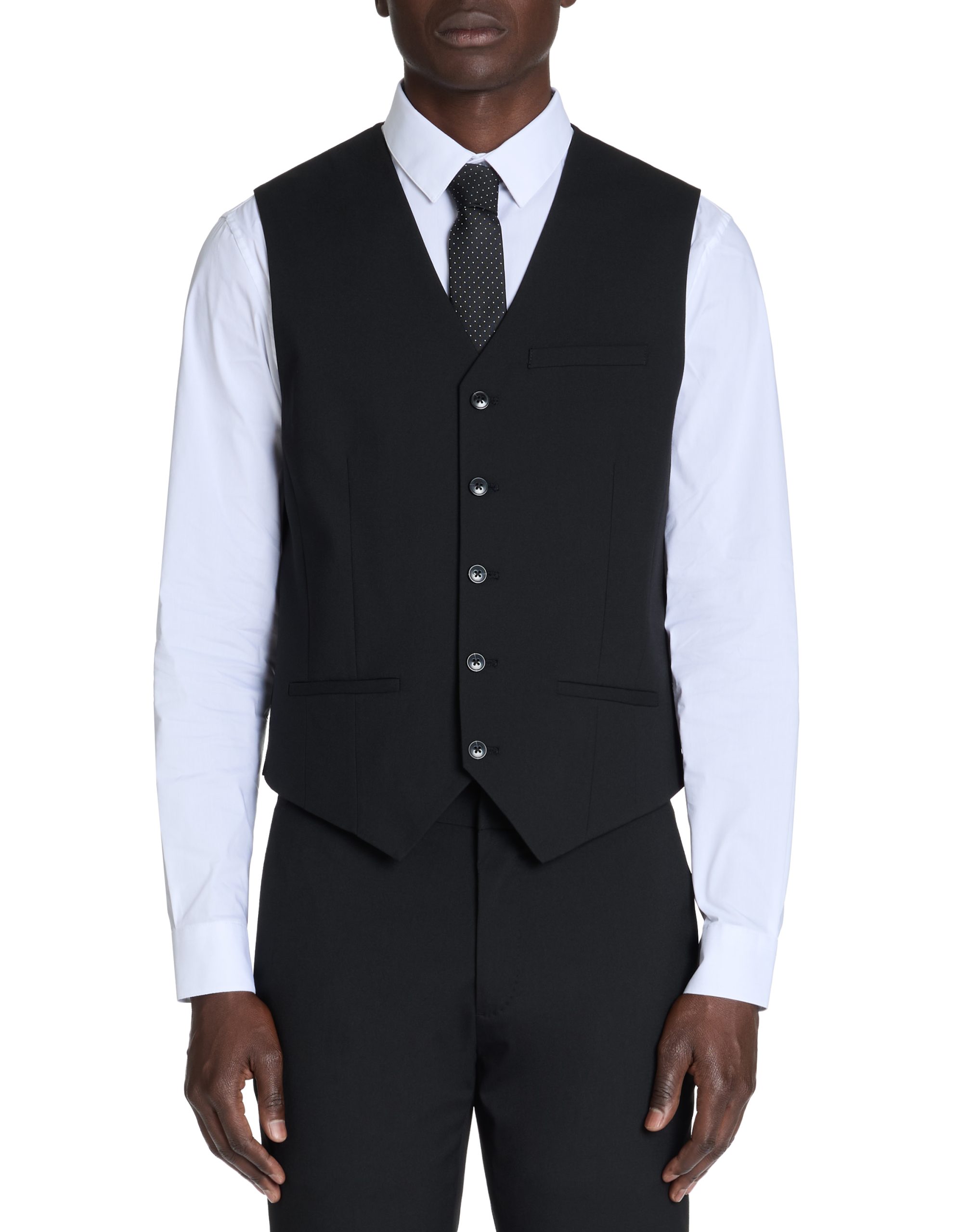 Suit vest made of woven fabric. The model is a revisited version of the classic tailored suit vest, with properties that allow a perfect fit without compromising on breathability and comfort. – V-neck – Button fastening on the front – Two side pockets, ha